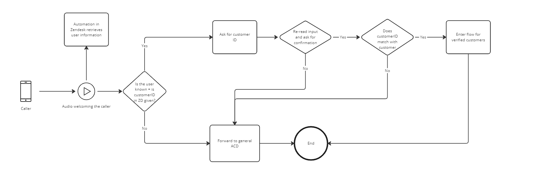 - If the input of the customer and the data in the Zendesk field match, the customer is authenticated and enters a fast track queue