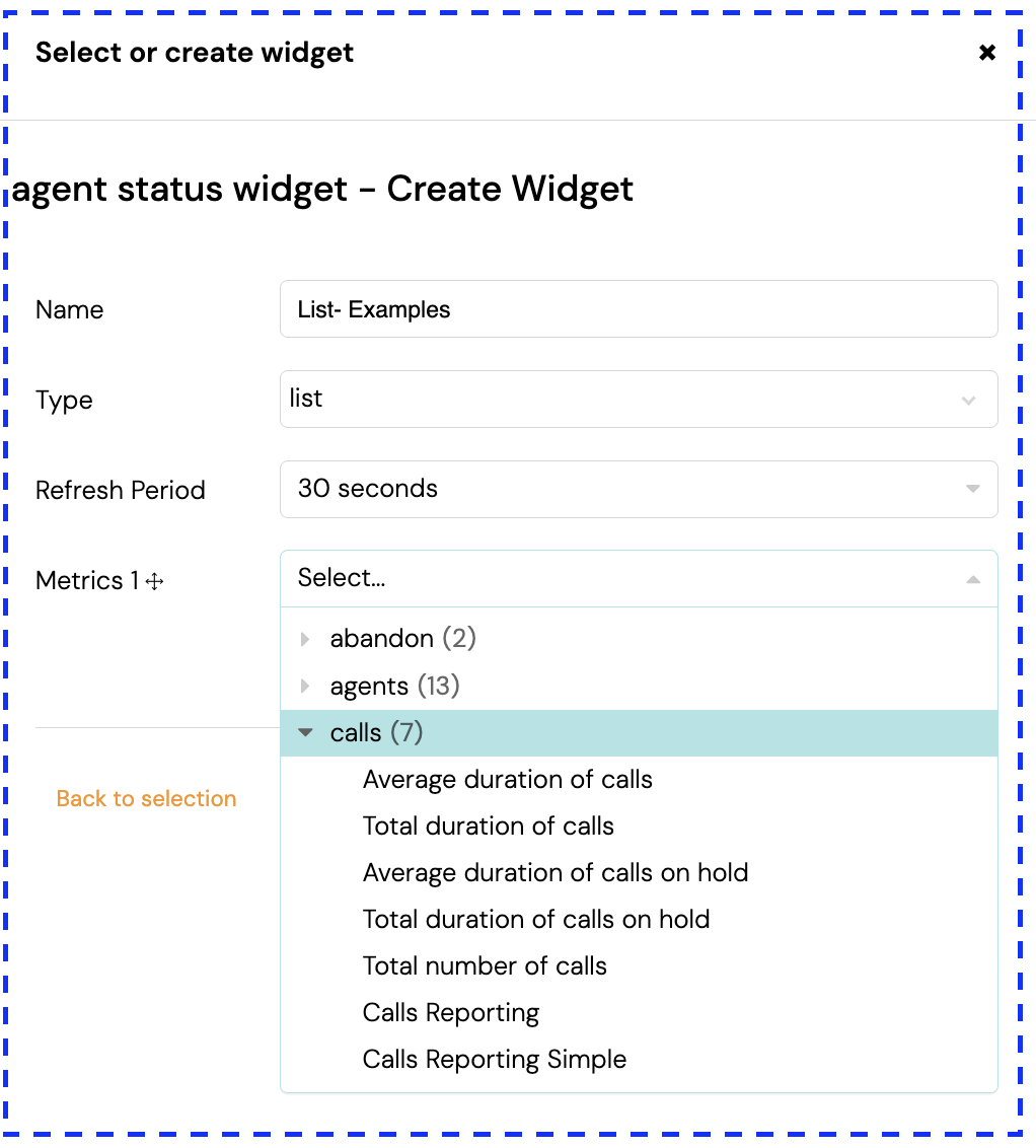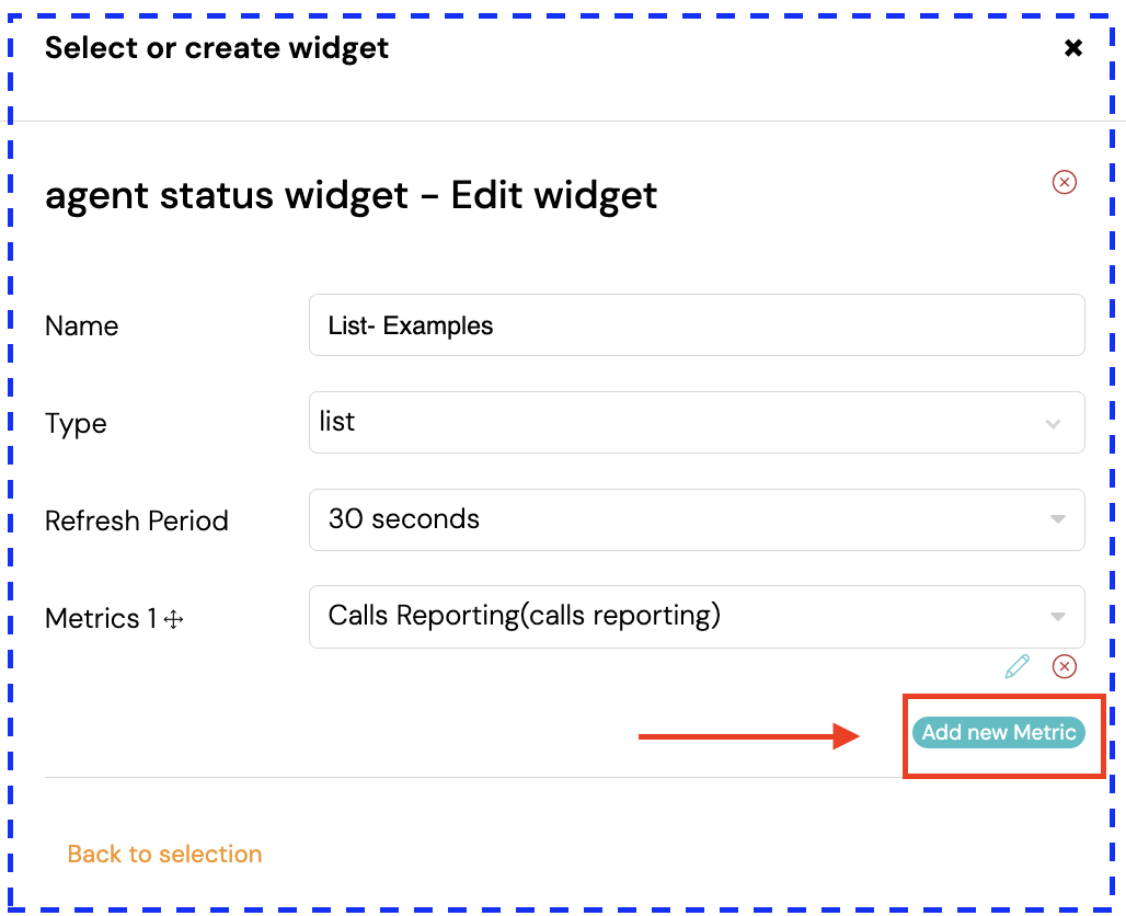 If you want Metric 2 to also be Calls Reporting but with different settings, this is not possible in the same widget. You need to create a second widget for the second metric.